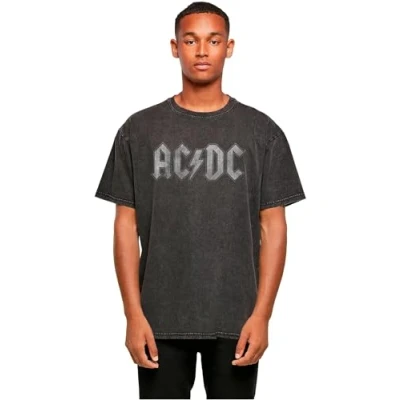 Merchcode ACDC LOGO ACID Washed Oversize TEE Print Tshirt, Men's, Size: 3XL, Black