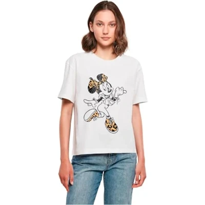 Merchcode Minnie Mouse LEO Print Tshirt, Women's, Size: Large, White