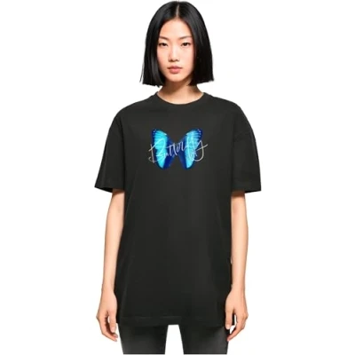 Merchcode Oversized Boyfriend Print Tshirt, Women's, Size: Medium, Black