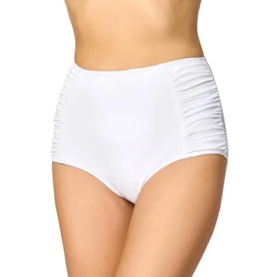 Bikini briefs; high waistband, full cut briefs; embellishments on the sides; with soft rubber in the waistband High-quality Italian material; breathable, soft and elastic; great resistance to salt and chlorine water; UV protection (UPF 50+) With original Lycra fibre women's swimming trunks, women's biknitrousers Made in the EU