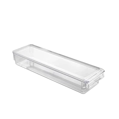 Perfect for those who love order - create order in your fridge with the items from the Frigo organisation system and sort vegetables, meat and fish, eggs and packaged food cleanly. Slim, transparent fridge organiser with lid Made of clear plastic, BPA free and food safe. Perfect for those who love order. Dimensions (L x W x H): 10 x 37 x 5 cm, Weight: 0.5952481074 pounds, Manufacturer: Metaltex