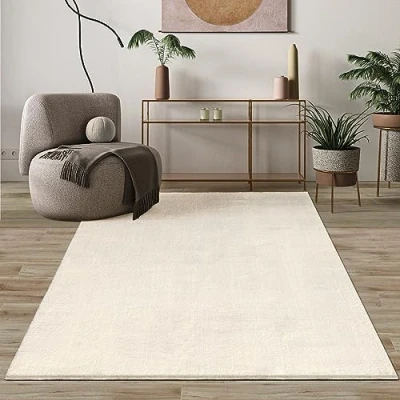Modern soft short pile (15 mm) living room rug in elegant fur look 100% polyester (microfibre), easy-care and robust Washable up to 30 degrees, suitable for underfloor heating Non-slip underside, ideal for bathroom and children's room Strong and durable