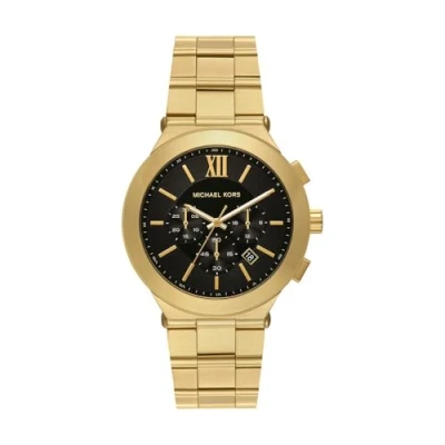 Case and Movement: 44mm case, 20mm band width, scratch resistant mineral crystal, accurate quartz movement with chronograph analog display, imported Dial: Round gold durable stainless steel case, with a brushed black dial Watch Band: Gold durable stainless steel bracelet; links can be removed for a customized fit Water Resistant: Up to 50m (165ft): Wearable for short periods of recreational swimming and showering, but not diving or snorkeling; 5 ATM Warranty type:Manufacturer; 2 Years Warranty