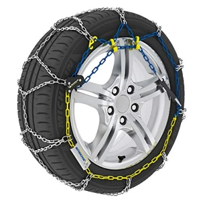 Approved snow chains with asymmetrical cross braces for optimum grip on snow and ice, in traction, cornering and braking Patented 9mm square section reinforced link chains. Suitable for reduced wheel passage. Wheel rim protection stoppers and hubcaps Quick and easy to mount on your tyres thanks to its flat swivel locking system, colour markings and self-locking manual tensioning Visibility +: Extrem grip chains are equipped with MICHELIN's NVS -Night Vision Security reflective system, reflective side element that increases the vehicle's night-time visibility Snow chains supplied in a double compartment case to prevent tangling. Includes: 2 spare links, 1 pair of long-sleeved gloves, 1 laminated instructions as a mat for assembly, and 1 user manual. Please refer to the vehicle manufacturer's recommendations for compatibility with your vehicle.