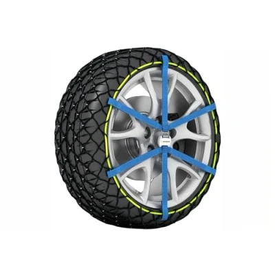 Composite Snow Chains Certified according to European standard EN1662-1:2020. MICHELIN Easy Grip EVOLUTION are high-performance snow chains made from composite materials that are easy to handle. Its exclusive MICHELIN structure and 140 galvanised rings ensure maximum performance in snow and ice both in the traction and propulsion phases, braking and corners. Its extendable closure system facilitates assembly. They comply with the French decree of 18 July 1985 concerning anti-slip devices for tyres. Complies with Swiss regulations Ultra-fast assembly and disassembly thanks to the new elastic tensioner and the easy front closure with metal bushing Suitable only for vehicles catenabili (see the manual for use and maintenance of your car) Tip: For comfort and safety, practice assembly and disassembly before use