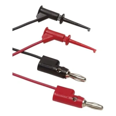 1 pair (red, black) of test leads with multi-stacking 4 mm banana plugs and micro-hooks Micro-hooks attach to component leads up to 1 mm diameter 90 cm long PVC insulated leads 30 V rms or 60 V DC, 3 A One year warranty