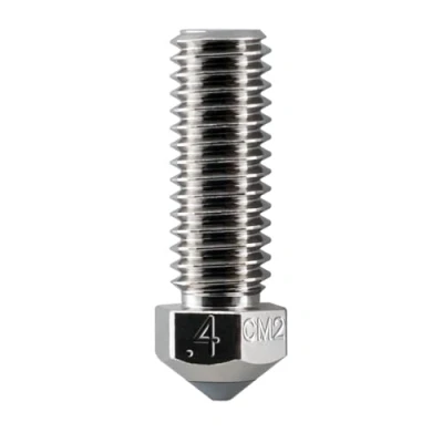 Micro Swiss CM2 Nozzle is an ideal nozzle for all applications. Core of the nozzle is made of high-temperature Copper Chromium Zirconium and plated with an Electroless Nickel Plating. This special alloy retains its strength at much higher temperatures compared to a regular copper alloy. The tip of the nozzle is made of M2 Hardened High Speed Steel and coated with a special nonstick nano coating.