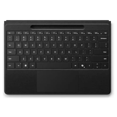 AZERTY keyboard. Surface Pro Flex keyboard is compatible with the Surface Pro 13" (Pro 8, Pro 9, Pro 11 Copilot+ PC, sold separately) The Surface Pro Flex Keyboard is designed to be used both attached to your Surface Pro 13" (sold separately) to create the ultimate computer as well as detached to fit all your needs Copilot at your fingertips. Open Copilot with a single touch to boost productivity and simplify everyday tasks Enjoy a comfortable experience without compromising on accuracy with a touchpad that's 14.3% larger than previous generations. With a long battery life of up to 41 hours of continuous use, you can rest easy when using this keyboard in detached mode. When you need to charge, simply attach it to your device. Customizable haptic touchpad. With adjustable pressure sensitivity, create with simple intuitive gestures and enjoy incredibly precise control. The integrated storage slot of the Surface Slim Pen (sold separately) allows for secure and easy charging.