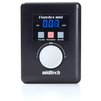 General midi soundmodul with smallest size! the pianobox mini adds sounds to each midi and usb masterkeyboard General midi soundmodul with 128 general midi sounds; 3 buttons and wheel for quick access to program, volume and reverb Midi input adaptor; usb midi input port Line / headphone out 3,5 mm; usb host to power usb keyboards Ntegrated rechargeable battery with 2500mah