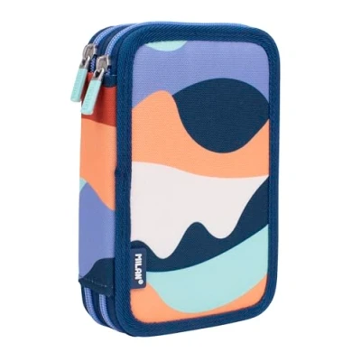 2-story pen that allows to keep school supplies always tidy and easily accessible. The Fun series, in shades of blue. A collection inspired by the fun and enjoyment of the experience during the creative process. With a unique color palette, the different shapes of a collage become the print of this collection. Contents: 2 x Erasers (4024 and Nata blue), 1 x AFILA Sharpener, 1 x HB Graphite Pencil, 1 x Black CAPSULE Pen, 1 x 15 cm Triangular Ruler, 12 x Triangular Colored Pencils, 18 x Taper Pens Fabric composition: outer and inner polyester lining. Dimensions: 19.5 x 13 x 5 cm.