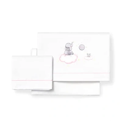 Mini Cottage Sheet Set Elephant Cloud White and Pink