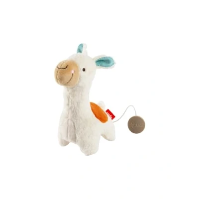 Cuddly soft sleep aid in mini format, beautiful and harmonious colours, cute llama for cradle, baby seat or car - the ideal gift for a birth or christening Also great for playing and cuddling: compact size, numerous gripping options such as ears, head, and tail - colourful and detailed design Soothing melody to fall asleep: 1 of 4 children's songs - randomly selected; mechanical musical mechanism replaceable: additional melodies are available separately from the manufacturer Please note: The musical mechanism must not get into the hands of babies and toddlers and must be put back into the music box after washing. Instruction manual: Secure zipper with paper clip open by lifting the latch. Safety zip closure by pressing down the latch. Box contents: 1 mini music box llama with random melody, size (W x H x L) in cm): 16 x 6 x 9, washable at 30 °C, recommended age: 0 - 36 months, item no. 43451
