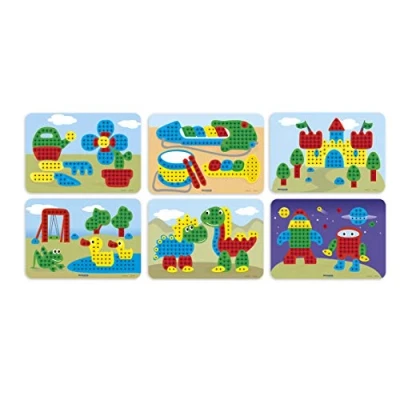 Amazon 6 patterns. Pack of sheets, fun patterns to make with the pegs. Skill Development - Visual & Spatial; Logical & Math; Body & Move, Manufacturer: Miniland
