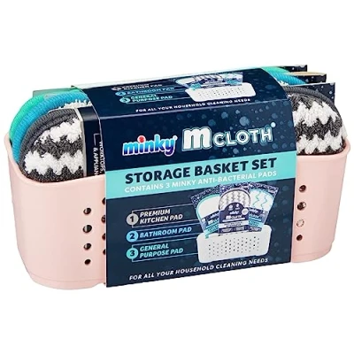deal for Minky cleaning cloths and pads – store up to 3 pads (kitchen, bathroom and original pad included)! A stylish, Minky branded modern storage basket with ventilation holes to keep pads fresh Features Slim line design for compact storage Storage Basket - Made in the UK