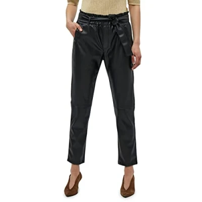 AmazonMinus fashion: pant in 100 percent polyurethane Pu leather pants with mock fly and matching tie waistband Pant in 100 Black size 34