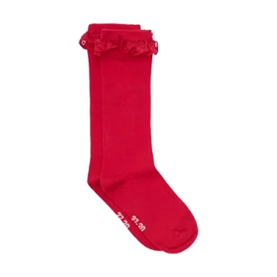 Pretty knee socks with cotton lace frills at the top. Goes for party and everyday use. Made of cotton, polyamide and elastane. Soft toe with no seams or annoying stitching. Certified acc. to OEKO-TEX STANDARD 100 Cert. No. 2276-364 DTI. Knit 78 Percent Cotton, 21 Percent Polyester, 1 Percent Elastane Dänish design Girl