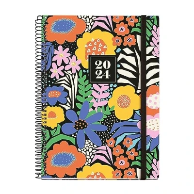Miquelrius Annual Planner 2024, Week to View, Plus Size 155 x 213 mm (similar A5), Hard Cover, Spiral Binding, Elastic Closure, Spanish, English and Portuguese, Floral Garden
