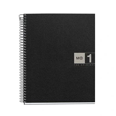 Ultra-resistant and lightweight opaque polypropylene. Includes removable explanatory adhesive. Extra opaque paper 70 g/m sup2 80 sheets of one color, micro-perforated for clean start and with 4 holes for filing Striped square 5 mm with color bands for sorting and header for titles. Forest certification fsc mix credit Spiral binding with coilock system