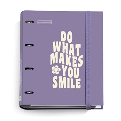 Miquelrius Message Folder with 4 Rings + Replacement for 100 Sheets A4 Grid, Dividers and Envelope, Rubber Closure Purple