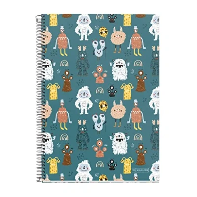 Large school notebook (folio) with 80 sheets with 4 x 4 mm grid and margin, cover design with fun monsters Paper size folio (215 x 309 mm) extra opaque 70 g/m²; prevents ink penetration and is stopped thanks to quick drying even its irradiation 4 x 4 mm grid with high-quality offset printing for more fineness that highlights the writing and makes reading and studying easier Cover hard cover made of matt laminated cardboard, compact and durable; continuous spiral with COIL-LOCK system that allows the notebook to open flat as well as completely turn it over and avoid snaging. Made in Spain
