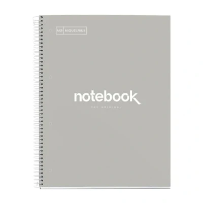 Large A4 (210 x 297mm) spiral notebook with hard cover and paper with 5 x 5mm grids. White sheets with outer and inner margin in 5 colours, allowing easy division by subject or subject in the same notebook. 120 sheets of high quality paper with extra high coverage. The 90gsm weight prevents ink or ink from showing through and is perfect for use on both sides. Micro-perforated sheets for easy separation and 4 hole punched holes for filing in a binder. 5 intense colours with 24 sheets per colour. Each sheet is equipped with a margin, heading header and a grid in one of the colours. High quality colour printing for easy writing and reading. Cover made of extra stiff, matt laminated, laminated cardboard that serves as a desk mat. The Coilock spiral prevents snagging and allows for flat striking. Colour: grey. Notebook made from sustainable paper with FSC MIX CREDIT certification, which guarantees that the paper comes from ecologically sustainable forests. Made in Spain.