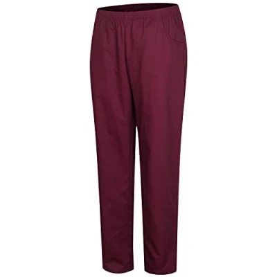 Two spacious side pockets, wide, comfortable, fully elastic waistband, narrow tapered legs, elastic slip-on trousers, inseam 32.5 inches, 65%, polyester 35% cotton ALL DAY COMFORT: The elastic waistband with natural rise and tapered legs of the scrub pants feel comfortable and good on your body. SCRUB PANTS: Our medical scrubs are ideal for women who are doctors, nurses, surgeons, dentists, therapists or beauticians. HASSLE FREE WASHING When you're done, just throw this nurse scrub shirt in the washing machine and let it do the rest. No fading or loss of shape CHOOSE A COLOUR: The high-quality scrub clothing with practical pockets is available in a variety of solid colours that do not fade easily.