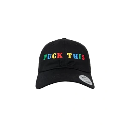 AmazonThis Dad Cap black one size Simple daddy cap with antique brass clasp Front is not stiffened (unstructured), giving extra deep shape