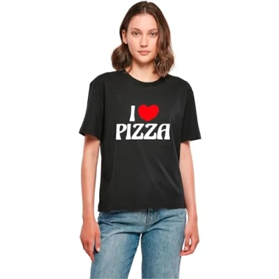 Mister Tee Pizza LOVE Print Tshirt, Women's, Size: Medium, Black