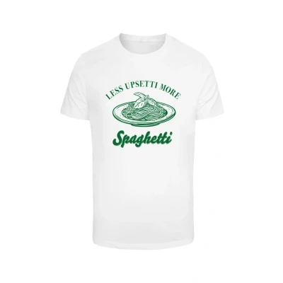 HUMORFUL DESIGN: The Mister Tee men's t-shirt "Upsetti Spaghetti" impresses with a fun front print that gives any outfit a relaxed and humorous touch. Comfortable material: made from 100% cotton, this T-shirt offers a comfortable feel and is ideal for everyday use. Classic cut: the regular fit ensures a loose fit that sits comfortably and can be combined in many ways, ideal for urban street style. EASY TO MATCH: Goes perfectly with jeans, shorts or sweatpants and is a versatile garment for any fashion-conscious man. Easy care: machine washable and fade resistant, the t-shirt retains its shape and bright colours even after many washes.