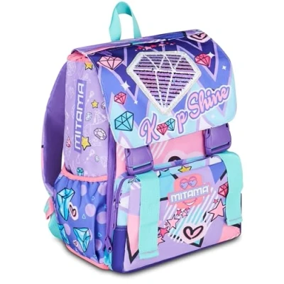 Mitama Double Diamond Triple Compartment School Backpack, Lilac, Expandable Bottle Pocket, Pre shaped Backrest, Elementary School, Girl