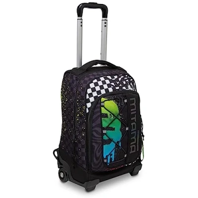 DIMENSIONS: 31x20x49 cm; CAPACITY: 30 lt SHOULDERS: FAST'N GO system, with length adjustment tape is designed to not touch the ground, avoiding dirt and breakage. Shoulder Protection Pock STRUCTURE: The internal structure is made of plastic and metal: it holds wheels and handle. The double bar telescopic handle adapts to the boy's height to carry the weight better. POCKETS: Double zipped compartment for better material division. Storage compartment. Contrast front pocket with handy pen holder for even more efficient organization. Pen Holder Lining. FEATURES: Pull or wear as a backpack, school or hand luggage. By pulling the load you can distribute the efforts, preventing the weight from serious only on the shoulders.