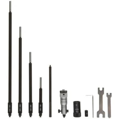 Interchangeable measuring rods allow you to take inside measurements of up to 1000 mm. Each interchangeable rod is marked with its measuring range. Accuracy: (6 + L / 50) µm* *L = Maximum measuring length (mm) ± [0,0003 + 0,00005 (R / 2)]" / Graduation: 0,01 mm For models supplied with more than one interchangeable rod, you can achieve the full measuring range by combining spacing collars with the rods. An extension handle to help you measure deep bores is included in sets up to 300 mm range. Make sure to buy an original Mitutoyo product. This instrument is supplied by Mitutoyo UK. Buying from us means buying original Mitutoyo instruments directly from the JPese premium manufacturer with the outstanding quality, durability and accuracy that you legitimately expect.