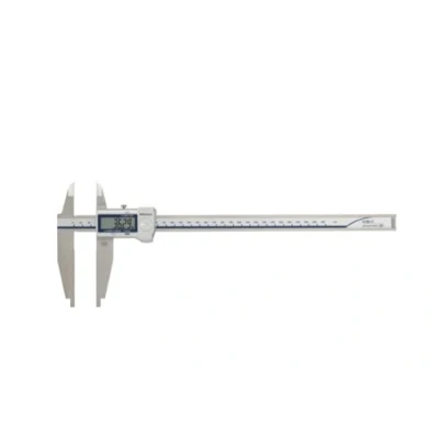 Absolute Digimatic calliper with cutting-shaped measuring surfaces for external measurement and with rounded measuring surfaces for measuring internal dimensions. Measuring range (mm): 0 - 300 Beak length: 90 mm Error Limits (mm): 0.04 Hole size (mm): 10