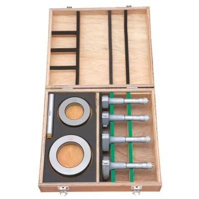Measurement range of 50 to 100 mm and precise to 0.005 mm, with + or - 3 micrometers of accuracy Three alloyed-steel contact points for durability Three-point measurement method for direct measurement of holes and bores Contact point geometry allows the instrument to measure to the bottom of blind holes Set includes four complete display units, two setting rings, extension rod, and fitted plastic case
