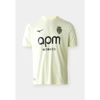 Shop Mizuno 3rd Jersey AS Monaco Men 25/26 Football Shoes Wax Yellow Size Snow. 3rd Jersey consists of an embossed front body with plain back & set in sleeves. * Solid rib crew neck collar & sleeve cuffs. * Plain back neck tape. * Tatami 3D siicone club crest and heat transfer Mizuno logos to centre front with additonal heat transfer DAGHE MUNEGU sign off positioned at the back neck. * Twin needle stitching to hemline. Official Licensed Product heat fransfer logo to front hemline, right side as worn. Standard fit 100% Recycled Polyester Machine wash 3D silicone club crest with heat transfer Mizuno & sign offs