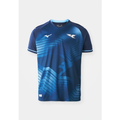 Shop Mizuno 3rd Jersey S.S. Lazio Men 25/26 Football Shoes Navy Size Mnow. The 3rd Jersey consists of an sublimated front body with plain mesh back & plain raglan sleeves. * Two coloured self fabric v-neck collar & sleeve cuffs. * Plain back neck tape. * Tatami 3D silicone 125 retro crest and heat transfer Mizuno logos with additional Mizuno logos to the sleeves. * 9 GENNAIO 1900 heat transfer sign off sits at the back neck. * Official Licensed Product heat transfer logo to front hemline, right side as worn. Standard fit 100% Recycled Polyester 100% Polyester rib trim inserts Machine wash 3D silicone 125 Retro crest Heat transfer Mizuno logo