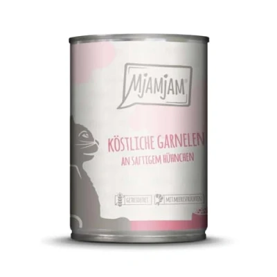 MjAMjAM Premium Wet Food for Cats Delicious Shrimp on Juicy Chicken, Pack of 6 (6 x 400 g), Grain Free with Extra Meat