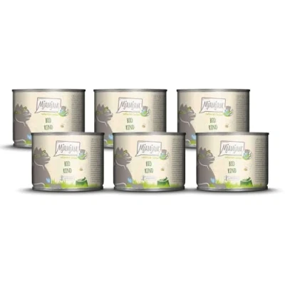MjAMjAM Premium wet food for cats naturally delicious BIO beef, 6 pack (6 x 200g), grain free with extra meat