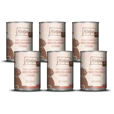 MjAMjAM Premium wet food for cats pure meat enjoyment exquisite ostrich, 6 pack (6 x 400g), grain free with extra