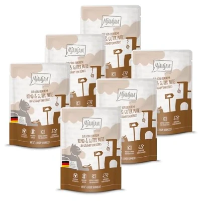 MjAMjAM: Grain-free, natural complete food for cats with an extra high meat content, monoprotein, important vitamins and minerals Composition: species-appropriate, natural and prey REGIONAL: Consists of ingredients sourced from regional farms Controlled: the ingredients are subject to strict quality control Animal well-being: animal welfare is always the first priority in the production process