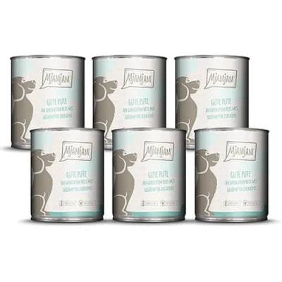 MjAMjAM Premium Wet Food for Dogs Good Turkey on Cooked Rice with Steamed Zucchini, Pack of 6 (6 x 800 g), Natural Extra Meat