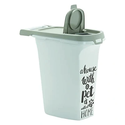 Airtight container, keeps food fresh and flavourful Protects food from moisture, humidity and pests. Clear body to monitor food levels at a glance Full top opening allows easy fill, secondary small top opening for pouring Smaller shelf size and larger wheeled version for easy manoeuvrability. Scratch and UV-proof IML print Designed for long lasting strength and durability. Food approved, BPA-free, non-toxic and 100% recyclable premium plastic