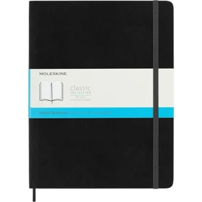 AmazonThe classic and legendary Moleskine notebook is tinged once again with new colours and shading maintaining the iconicity and characteristics of the most loved notebook Classic design with elastic closure and a convenient bookmark to never lose your place. On the back, an expandable pocket to hold important notes and papers The notebook has 192 pages with dotted layout and ivory-coloured 70 g/m² acid-free paper and the iconic "In case of loss" notice for your contact information in case you lose your notebook On the B-SIDE of the reusable band, additional instruments are printed. The Moleskine story is printed inside all our products. Opens totally at 180° The package contains a notebook with dotted layout and soft cover, available in size extra large 19 x 25 cm, 192 pages, black