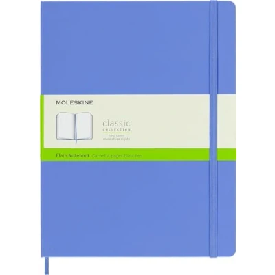 The classic and legendary Moleskine notebook is once again finished with brilliant colours and accents, retaining the iconic features of the most popular notebook Classic design with elastic closure and a handy bookmark. An expandable pocket on the back for storing important notes and documents The notebook has 192 pages with blank layout and ivory, acid-free 70gsm paper as well as the iconic "In case of loss" label for your contact information Additional instruments are printed on the B side of the reusable tape. The history of Moleskine is deeply anchored in all of our products. Opens fully 180° Included is a notebook with blank layout and hard cover, available in format 19 x 25 cm, 192 pages, hydrangea blue