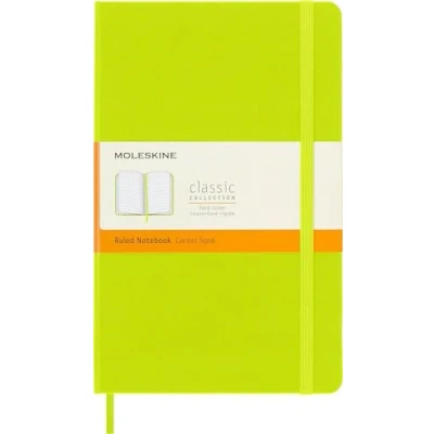 The classic and legendary Moleskine notebook is once again finished with brilliant colours and accents, retaining the iconic features of the most popular notebook Classic design with elastic closure and a handy bookmark. An expandable pocket on the back for storing important notes and documents The notebook has 240 pages of lined layout and ivory acid-free 70gsm paper plus the iconic "In case of loss" label for your contact information Additional instruments are printed on the B side of the reusable tape. The history of Moleskine is deeply anchored in all of our products. Opens fully 180° Included is a notebook with lined layout and hard cover, available in 13 x 21 cm format, 240 pages, lemon green