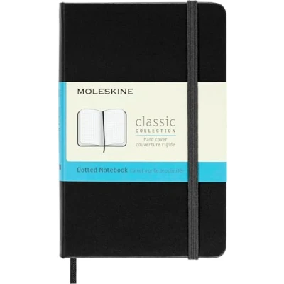 AmazonThe classic and legendary Moleskine notebook is tinged once again with new colours and shading maintaining the iconicity and characteristics of the most loved notebook Classic design with elastic closure and a convenient bookmark to never lose your place, on the back, an expandable pocket to hold important notes and papers The notebook has 192 pages with plain layout and ivory-coloured 70 g/m² acid-free paper and the iconic In case of loss notice for your contact information in case you lose your notebook On the B-SIDE of the reusable band, additional instruments are printed, the Moleskine story is printed inside all our products, opens totally at 180° The package contains a notebook with dotted layout and hard cover, available in size pocket 9 x 14 cm, 192 pages, black