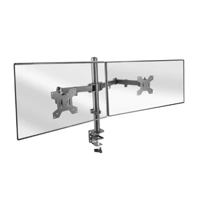 CUSTOM FIT: Optimize your workspace with ease and improve your posture while using two monitors at the same time. * ERGONOMIC FIT: Improve your comfort and productivity by working with two 27" screens in a single adaptable stand. * VERSATILE FIT: Increase your efficiency by using two monitors simultaneously, maximizing your space and productivity effortlessly. * MODERN STYLE: Transform your workspace with a sleek design that complements any environment and optimizes your concentration. * POSITIONAL DIVERSITY: Adapt your stand to fit any need and improve your well-being while working or playing. *