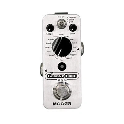 The MOOER GROOVE LOOP brings together both the MICRO LOOPER and MICRO DRUMMER into one micro pedal, for the ultiate in a portable jamming companion. Both elements can be used independently from one and other or simultaneously. When used simultaneously the looper will be automatically synchronised to keep in time with the drum groove you’ve selected and an intro click will be played when recording the first loop to ensure you’re in time with the groove. The tap tempo button makes adjusting the groove speed very easy and independent playback level controls for both the Drums and the Looper ensure GROOVE LOOP is a breeze to dial in and adjust on the fly.