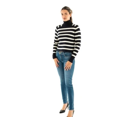 Striped turtleneck sweater Regular fit Turtleneck Horizontal Stripes Metallic thread details