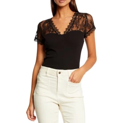 Morgan Short-Sleeved Lace T-Shirt, Black, UK 4